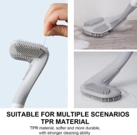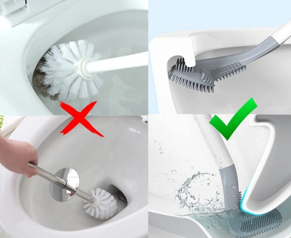 The silicone toilet brush is made of high-quality rubbery material that durable, the brush not easy to wear, bendable without deformation. Hanging wall design Perforation-free and durable Nail-free installation strong and non-marking stickers durable and stable not easy to fall Convenient for daily cleaning.