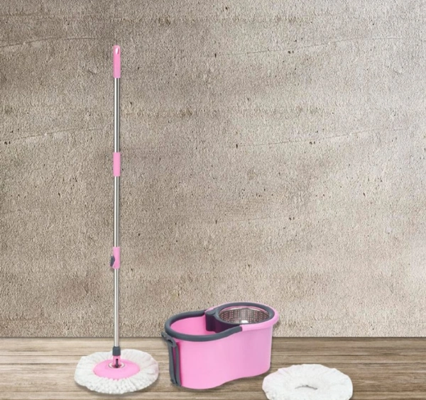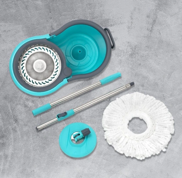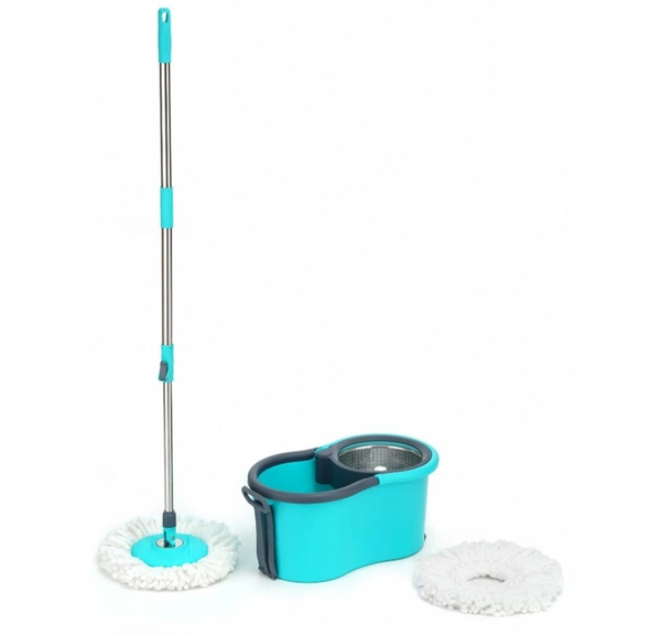 Spin mop with an oval bucket and stainless steel basket for your daily cleaning needs.